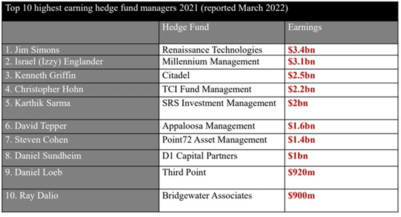 Several hedge funds have risen to prominence thanks to notable performance, asset size, or unique strategies:
